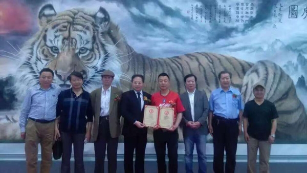 我有幸被邀请参加了现场认证仪式,见证了检测、认证、拍照,颁证的全过程。《中华圣虎图》,恢宏巨大,气势磅礴,夸张