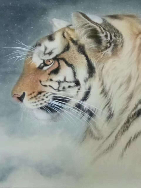 卢成之特别钟爱老虎,简直到了痴狂的成度。为了积累素材,他经常去东北虎园基地观察、写生、速写,与虎为伴、为师、为友,甚至虎我不分,视虎为手足兄弟,自己的生命,熟悉他的人都管他叫“虎痴”。