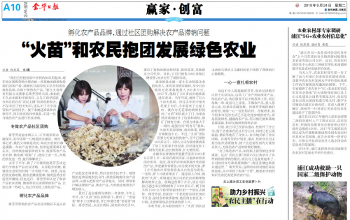 中秋节前,“火苗优品”团队还主动参与帮武义乌漱村的农户销售了滞销的红心猕猴桃。火苗优品的助农活动,也得到了当地媒体的认可和好评,金华日报先后两次对公司助农活动进行了相关报道!