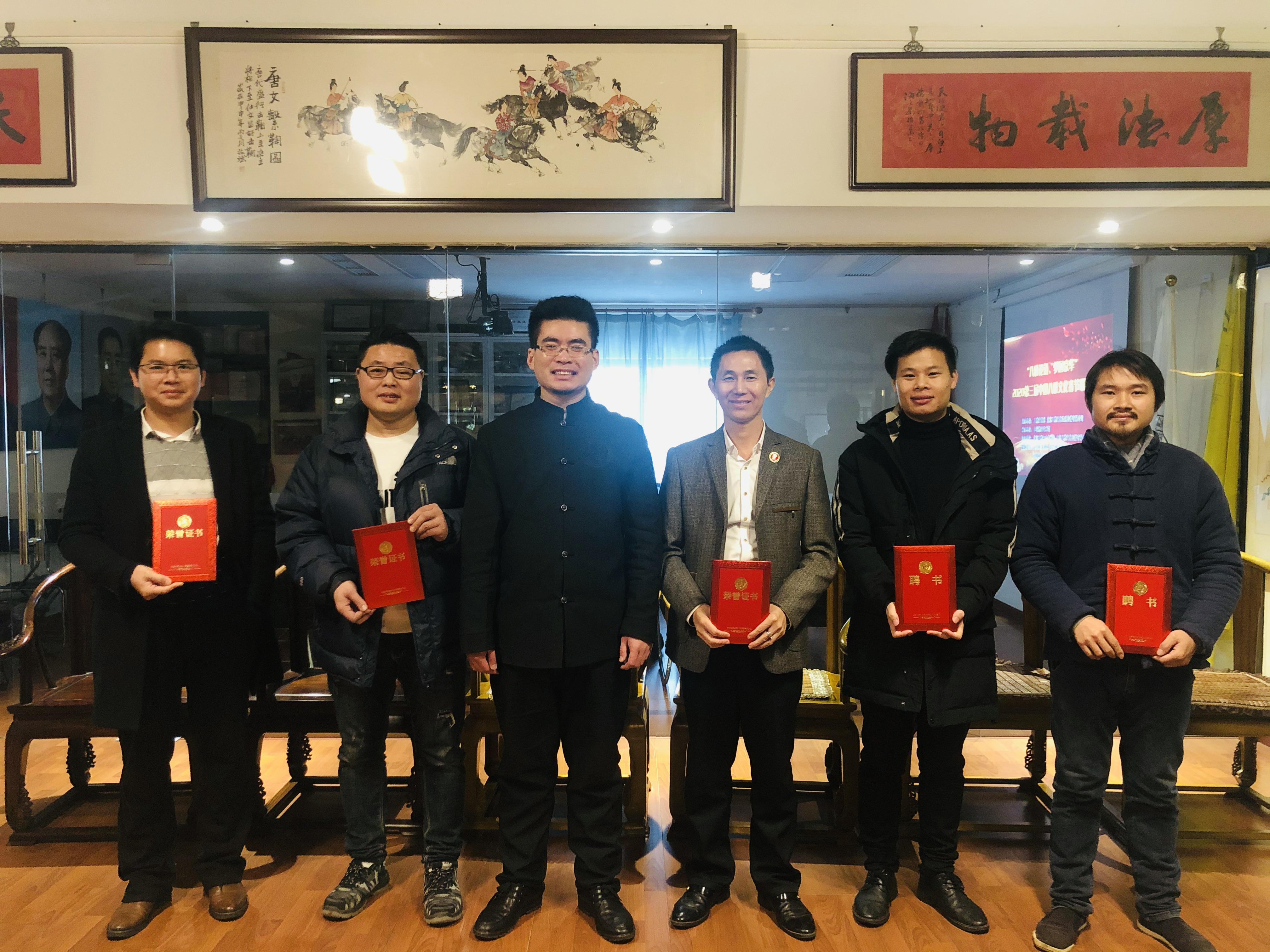 八雅先生刘永国向吴凯旋先生、李华先生、朱文龙先生、周余良先生颁发八雅文化网顾问聘书。