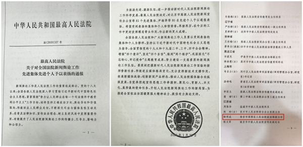 为进一步推动新时代人民法院新闻舆论工作科学发展,鼓励先进、激励队伍,最高人民法院对全国法院81个先进集体和80名先进个人予以通报表扬。此次评选中,江苏省法院系统仅有4名干警受到表彰。
