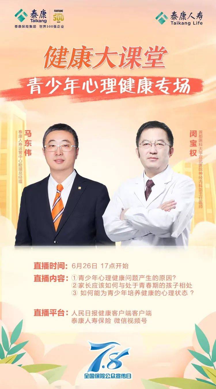 今年是第十个“7.8全国保险公众宣传日”。历届活动,泰康人寿均积极参与,扎实落实。响应监管要求,泰康人寿将一如继往发挥保险保障功能,致力通过长寿、健康及财富三大客户解决方案以及HWP职业解决方案,为更多中国家庭在长寿时代的幸福生活保驾护航。