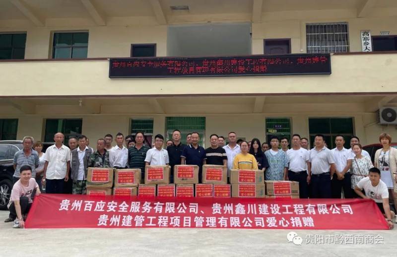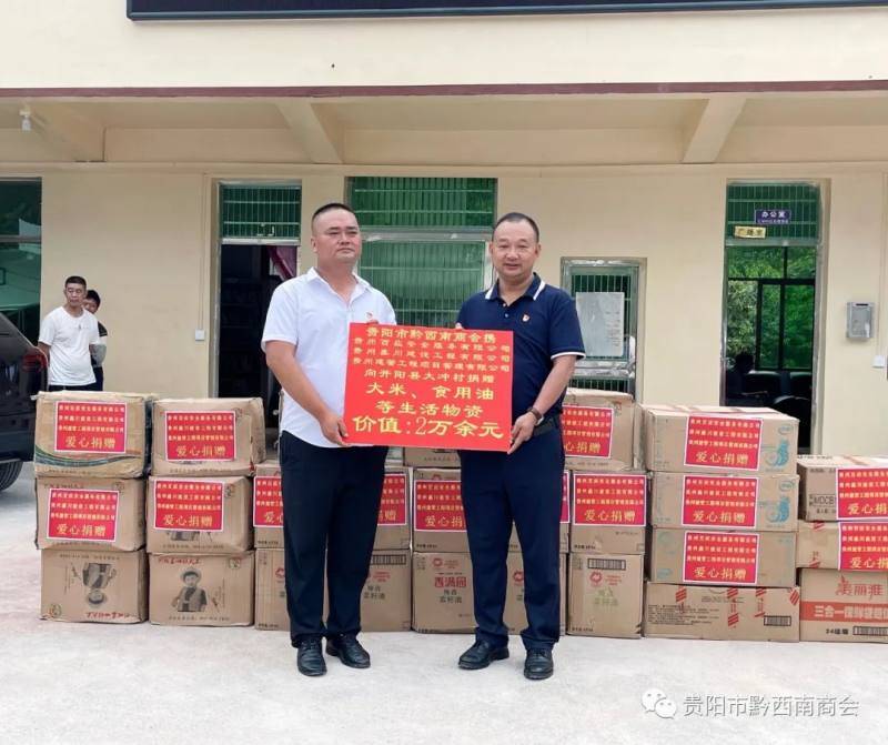 “党建引领聚合力、商会携手助振兴”。2022年7月9日,在贵阳市综合行政执法局市政工程服务中心驻村第一书记邹蔚的协调下,贵阳市黔西南商会携会员企业贵州百应安全服务有限公司、贵州鑫川建设工程有限公司、贵州建管工程项目管理有限公司来到大冲村助力党建联建暨爱心捐赠活动,为大冲村捐赠价值2万余元的大米、食用油等生活物资,并向村公益基金捐款4000元。商会会长李震,贵州鑫川建设工程有限公司董事长马文勇、贵州建管工程项目管理有限公司董事长王士海以及贵州百应安全服务有限公司负责人等参加。