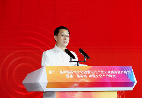 7月15日,第十一届中国苏州文化创意设计产业交易博览会在金鸡湖畔开幕,第二届苏州·中国文化产业峰会同步举行。苏州市委副书记、市长吴庆文出席开幕式并致辞。