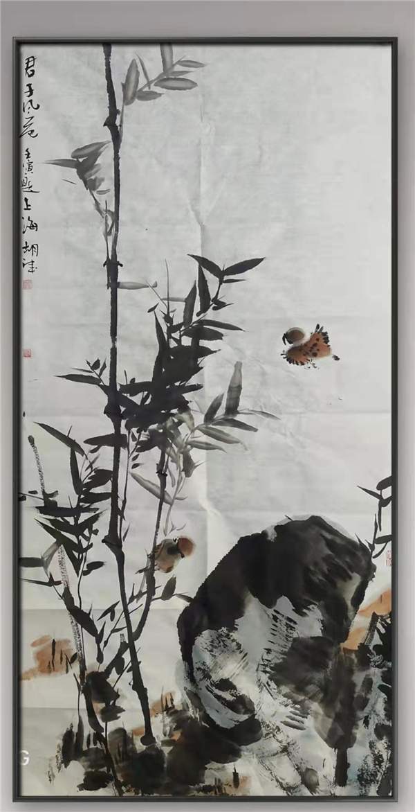 胡诚虽青春年少,旦习花鸟,暮追先贤,而尤精于新篁旧竹,常与文可、板桥相接,又苦心孤诣,于万千竹丛著上我之颜色,潇洒秀润,清丽纵逸,摇曳生姿,虽非一家之竹,亦可谓心手双畅,在竹自我也!读画读人,读诗读心。画家,踪其天性、禀赋、气质,本就是敏感的诗人,只不过其借以表情达意的工具是笔墨而不是语言罢了。徜徉在画家的笔墨世界里,其一笑一颦,一动一静则无不在目,无不在我。胡诚笔下之竹,常得物我回还之境,诗情喧嚣,哲思沉沉,所在皆是也。画竹出形,更在于出意。中空有节、坚韧挺拔、常绿不凋,自是君子之风,为文人画士所手追心慕。