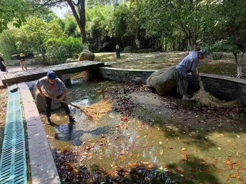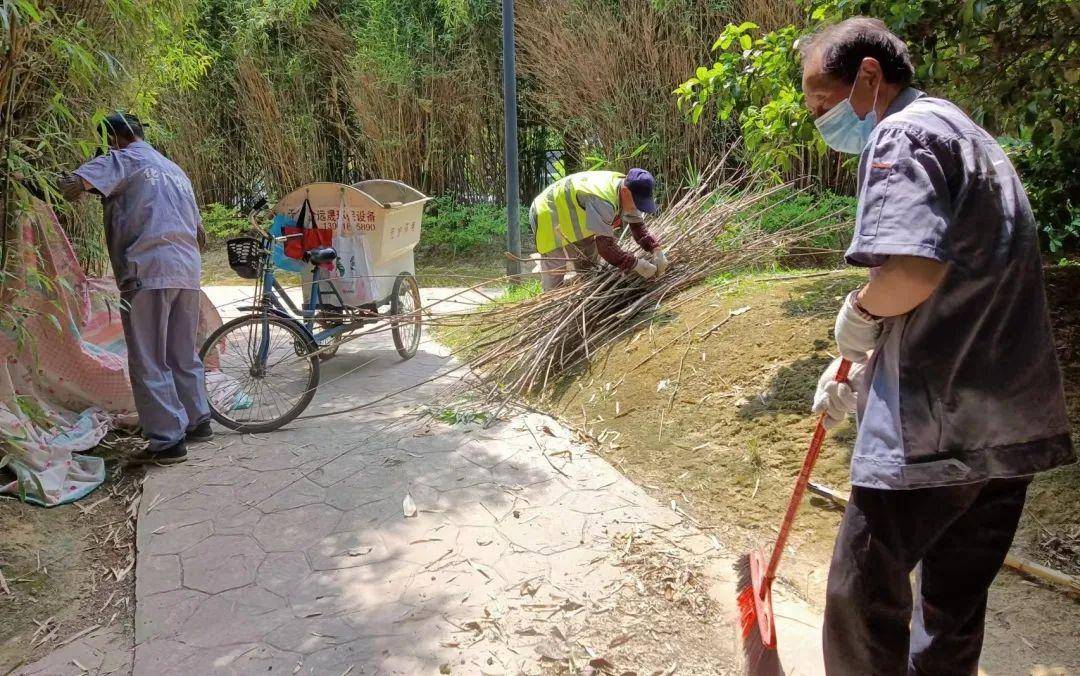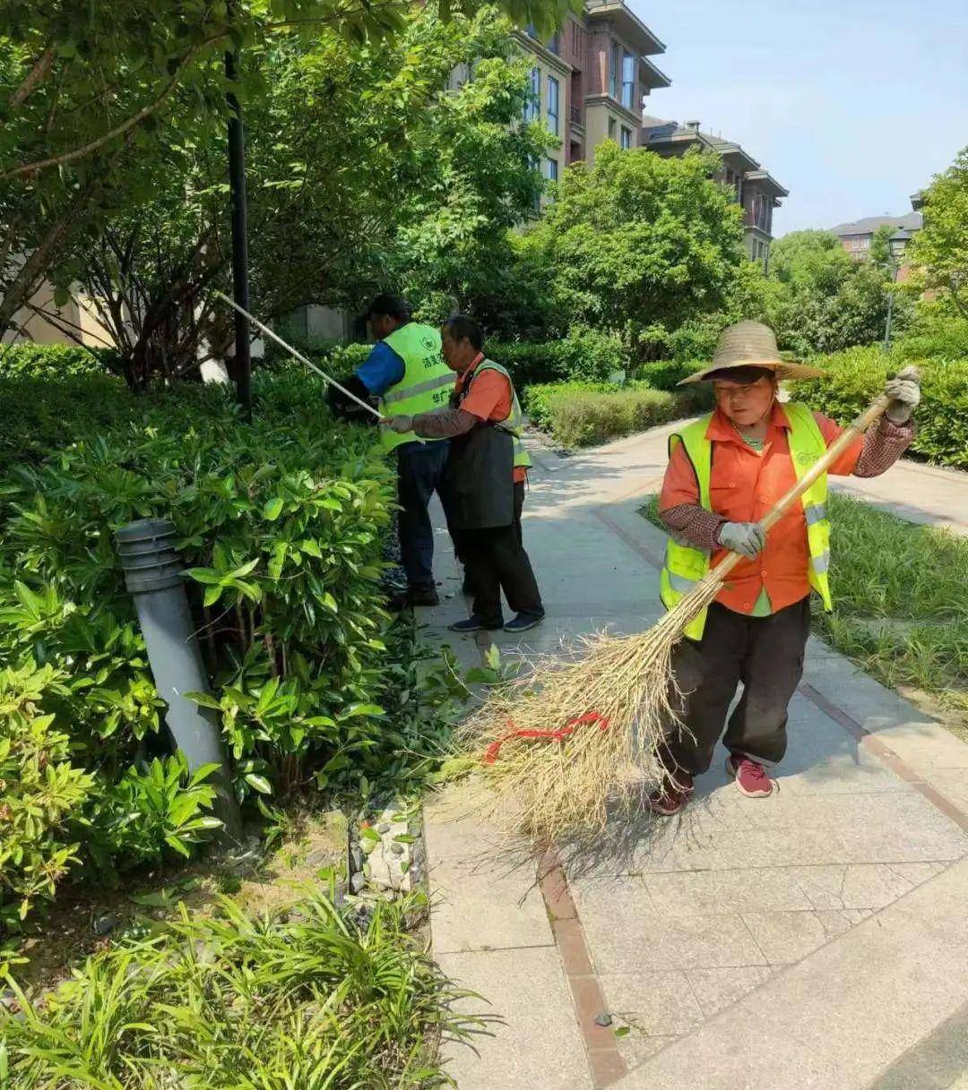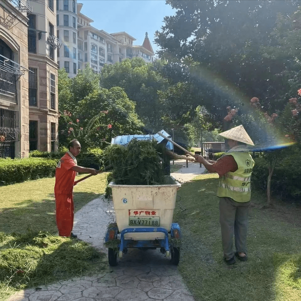 汗水浸透了衣裳,扑面而来的热浪围绕着这些勤劳的“美容师”,他们依旧坚持修枝剪叶,清扫道路,保洁保绿,打造高品质的小区环境。