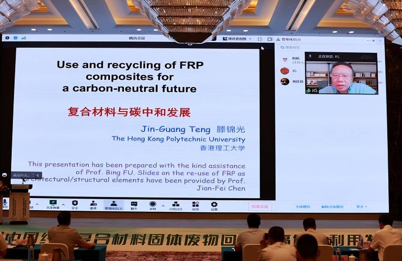 中科院院士、香港理工大学校长滕锦光通过视频连线方式向大会致辞。他在致辞中提到,玻璃纤维增强复合材料在我国基础建设中运用非常广泛,回收技术多年来进展缓慢,在国家的双碳目标下加快技术研发,早日实现技术通关;但特别要注意风电叶片中的玻璃纤维如与水泥的碱骨料反应,须有充分基础实践和严谨数据论证,确保回收技术可靠性。