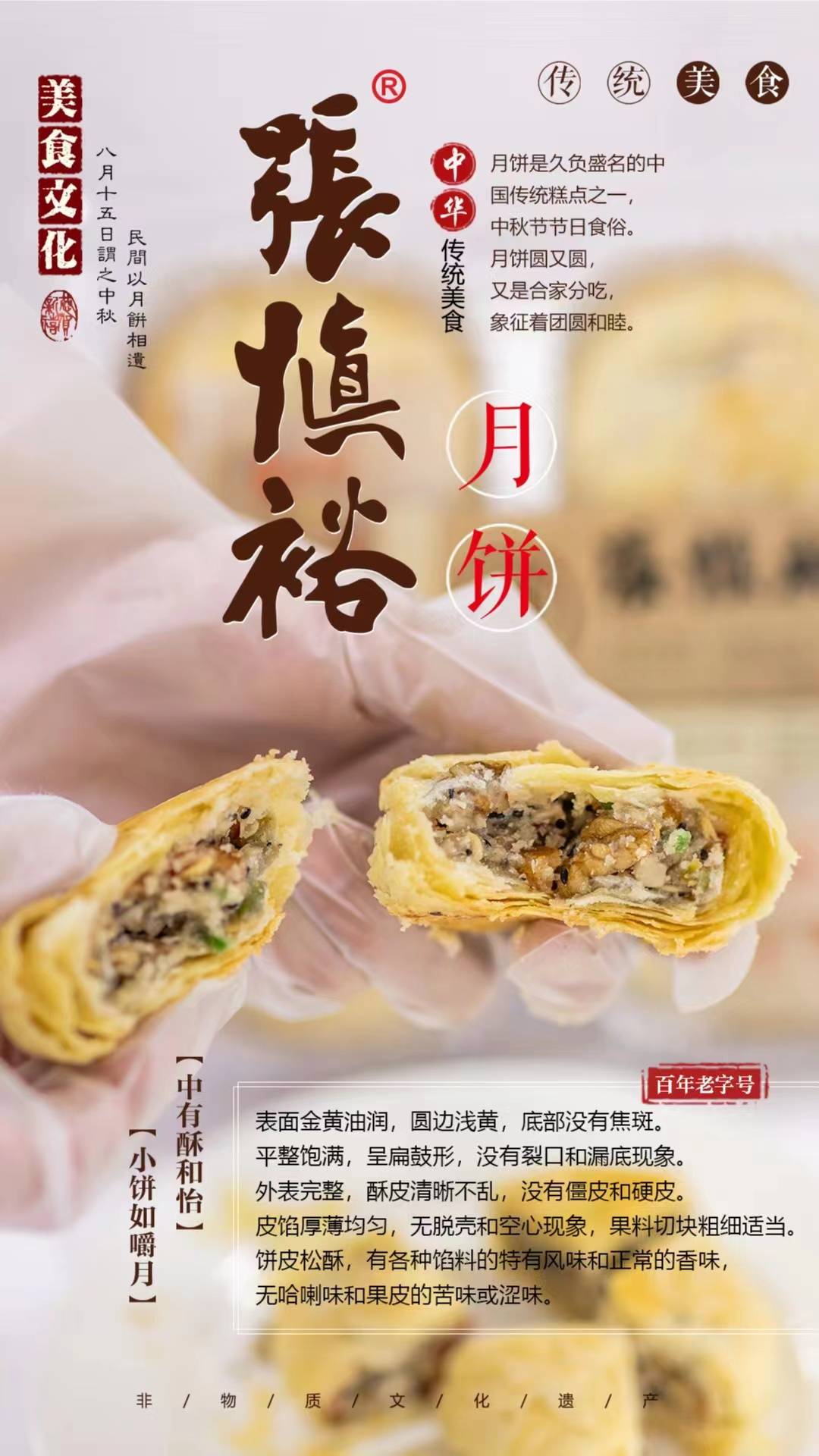 月饼是中秋佳节必不可少的食品,它是我们中国人情感的寄托。中秋之夜,阖家团圆,幸福美满,让人惬意。“张慎裕”食品坊作为一家具有多年历史的食品店,主动承担起推动中国老字号品牌发展为己任,始终坚守初心不忘使命,将百年老字号的传统月饼代代相传,将中国精神发扬光大。