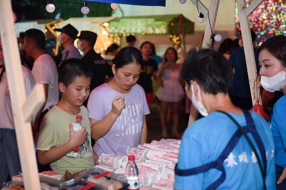 赏古街美景、尝特色美食、观文娱表演……今晚7点不到,月河历史街区的文旅夜市上早已摊位林立、人声鼎沸,五彩缤纷的彩虹展位让人眼前一亮,美食的香气吸引着食客,三五亲朋好友相约在此,逛吃、聊天、拍照,热闹非凡。