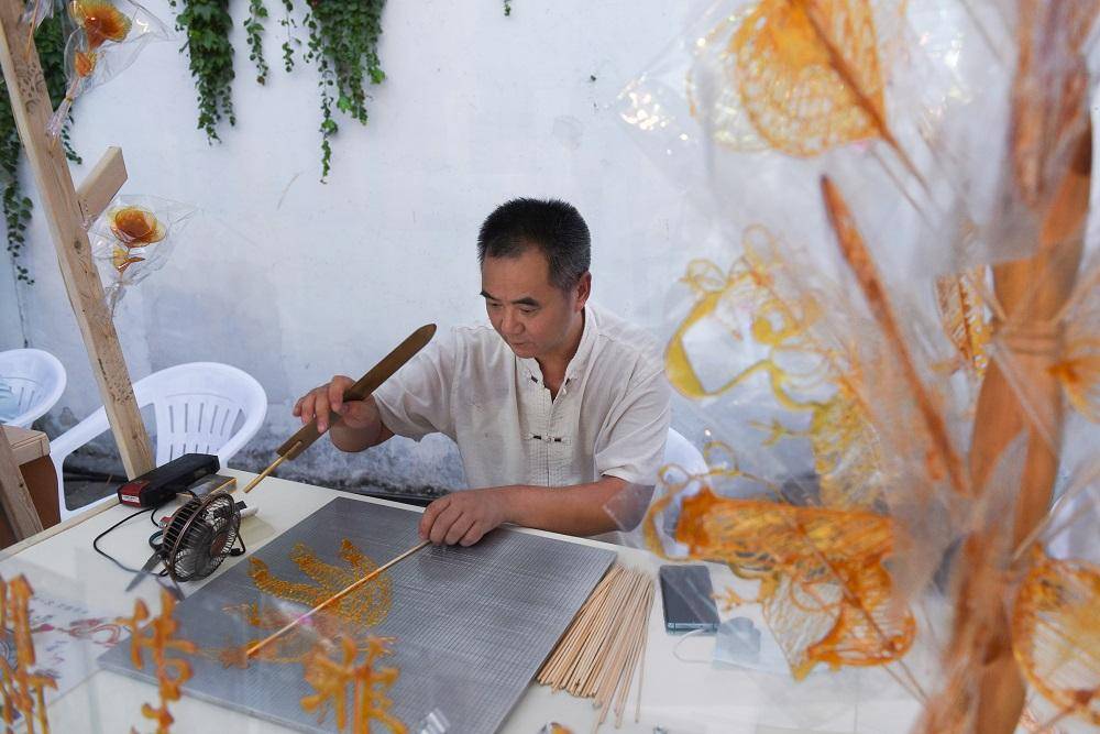 今晚,在月河文旅夜市上,姜中煌生姜、袁顺泰糕点、溜溜酱鸭、南门头春卷、桃园槜李汽水等各类美食吸引着大家一饱口福。各县(市、区)也纷纷拿出了“看家本领”,现场进行文旅产品售卖、特色非遗展示,平湖西瓜灯、海宁皮影戏、南湖菱画、草柳藤编……给市民和游客献上了一席精美的文化大餐。不仅如此,现场还有文旅好礼送不停,万元消费券免费发放,掀起活动热潮。