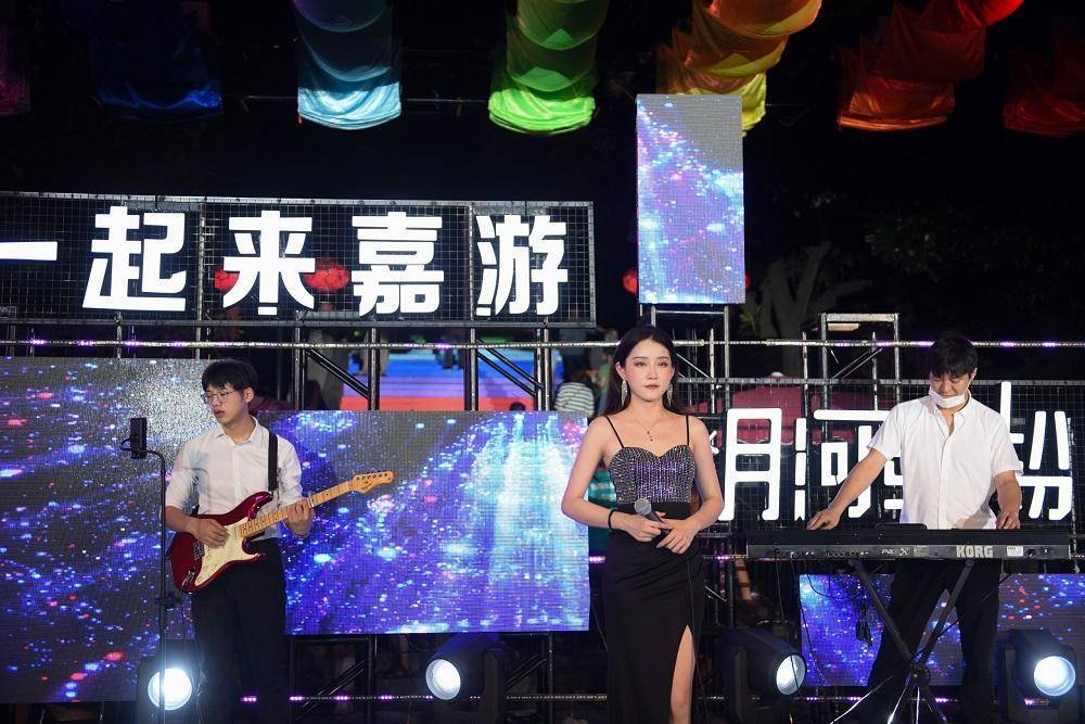 为了烘托夜市氛围,现场还举行了音乐快闪,舞台上乐队激情演奏,吸引了游客纷纷驻足围观,动感的音乐点亮古街韵味,热情洋溢的表演引来阵阵喝彩。