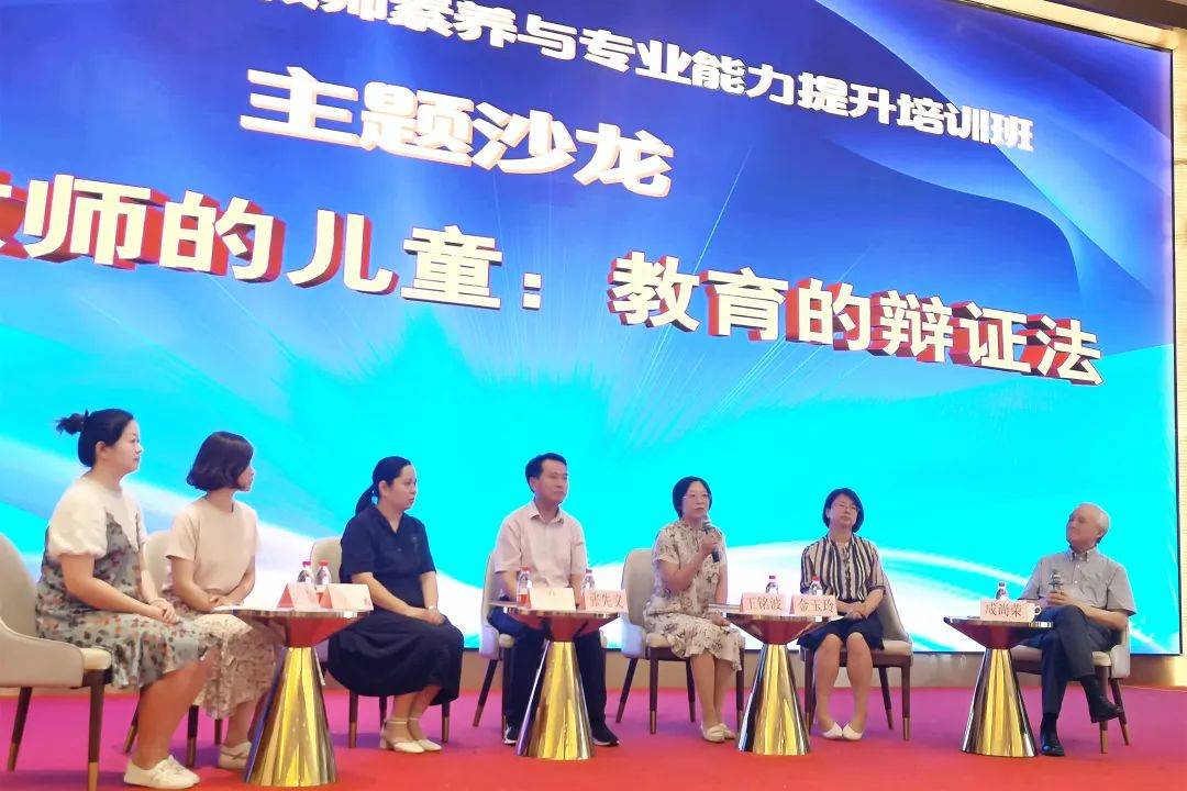 接下来,成尚荣先生主持了主题沙龙“作为教师的儿童:教育的辩证法”。无锡市教师发展学院张先义副院长作为特邀嘉宾,和集团校长代表、骨干教师代表一起参与研讨。围绕着“儿童研究”“作为教师的儿童”“辩证法”等关键词,每个人侃侃而谈,谈自己的思考和观点。张院长讲述了几个寓义深远的教育故事,他认为教师要“眼里看见儿童,心里装着儿童”,和儿童一起走向教育的未来。