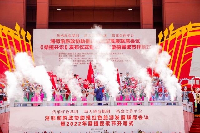 开幕式上,中共桑植县委副书记、县长梁高武致辞。湖南省政协党组副书记、副主席黄兰香宣布湘鄂渝黔政协助推红色旅游发展联席会议《桑植共识》发布仪式暨2022年桑植民歌节开幕。