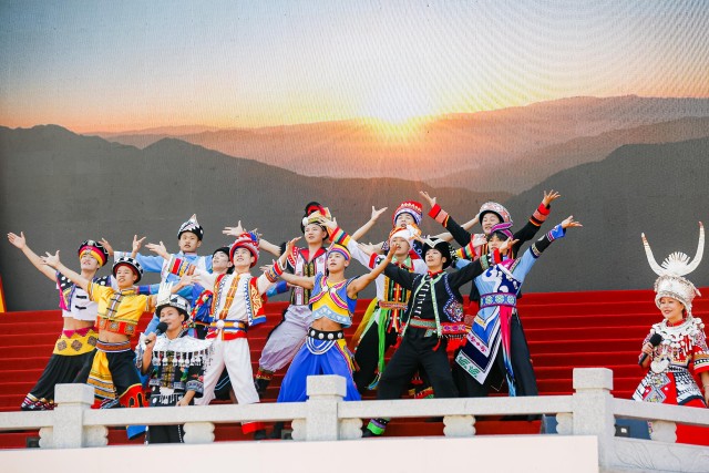 文艺表演环节,由湘鄂渝黔四省(市)主持人组成主持天团,分为三个篇章,以“英雄赞歌+四省(市)联动+唱响未来”三大核心内容进行展现。开场节目《带着幸福来见你》由2022年桑植民歌节歌手邀请赛总冠军朵久央、亚军石春松和桑植往届歌王谢静演唱,缓缓拉开活动序幕。收尾秀节目《美丽中国我爱你》由歌唱家刘一祯领唱,现场奏响号角,舞者欢腾舞蹈,大气震撼的画面展示出中华儿女对美丽祖国的热爱,体现传承红色基因的奋进决心,同时更展现桑植人民“办好旅发会 一起向未来”的决心。
