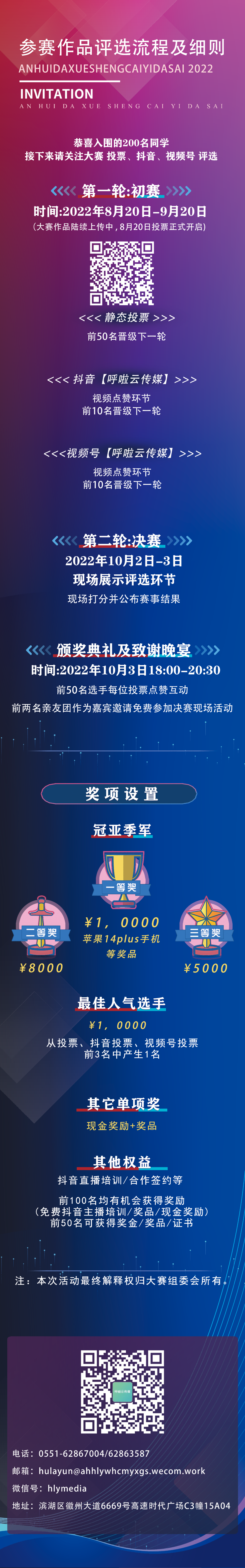 为响应当前疫情防控政策和主办方领导的活动从简要求,大赛组委会取消了投票启动仪式等相关线下活动,节省下来的20万元经费,将用于资助开学季入学的经济困难的大一新生。学生们可以通过呼啦云公众号报名申请,也可以由校方推荐。