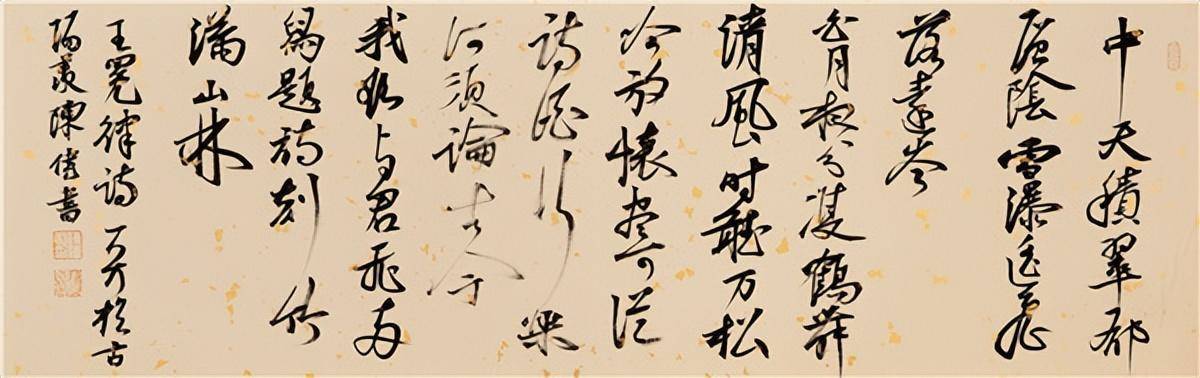书法是一门心灵的艺术,一幅好的作品不但要感人,还要让人的心灵在潜移默化中得到陶冶,精神得以升华。陈伟于“二王”、颜真卿、苏东坡、黄山谷用功颇勤,对黄道周、王铎等明清诸大家精品也常常心摩手追,他是十分重视从传统中汲取养分的。他认为师法古人却不囿于既定之法,兼取古法为己所用,独造心境,蕴真习静。所以陈伟兄的书法,不属于龙飞凤舞,恣意激越的艺术观赏性很强的那一种,但他的作品却自然清新,书卷气极浓。