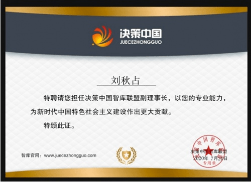 “老骥伏枥志千里,桑榆为霞红满天。”古稀之年的刘秋占老师仍然无时无刻地关注着时代的发展趋势和变化。他讲道“无论如何,我都会坚定不移地走下去,让华夏民族的伟力,我也无愧于自己的一生了。”刘秋占老师现任中华易学文化发展研究会副会长,决策中国智库联盟副理事长、荣誉主席。