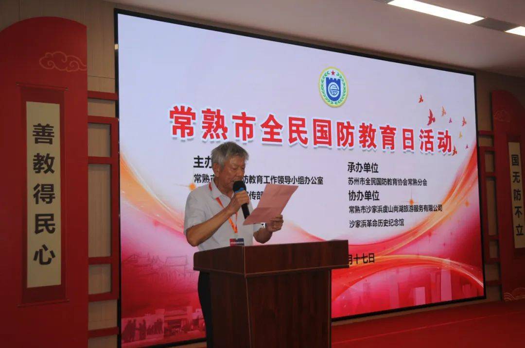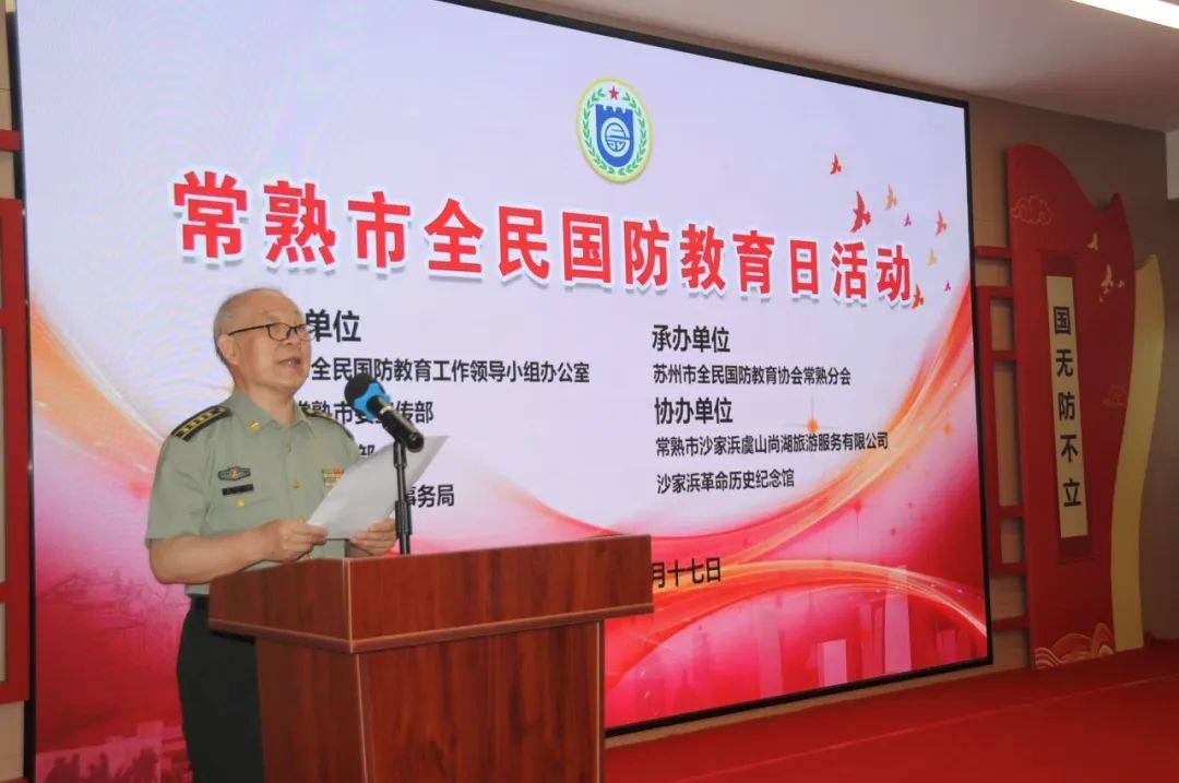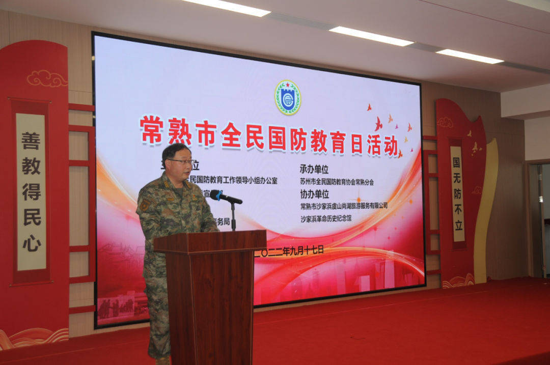 常熟市委常委、市人武部政委宋刚在讲话中指出,要推动全民国防教育走深走实,就要贴近时代脉动,注重创新探索,加强多方联动。他希望苏州市全民国防教育协会常熟分会能充分发挥沙家浜红色文化优势,引导更多的人群关心国防、热爱国防,使常熟的国防教育工作更上新的台阶,迎接党的二十大胜利召开。
