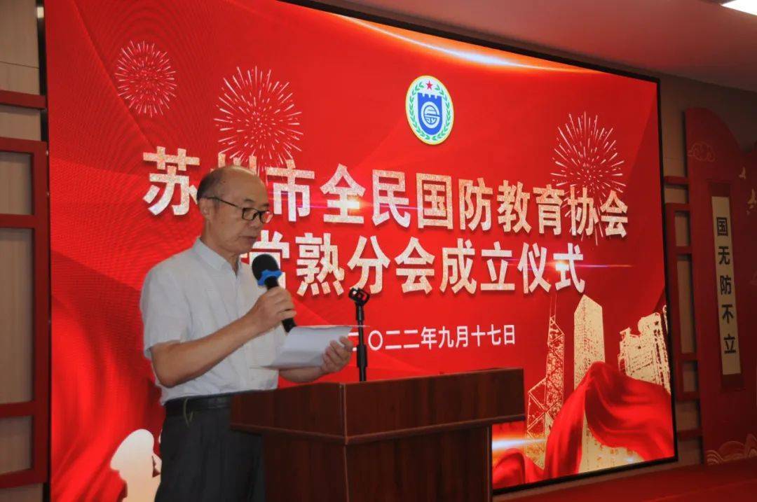 成立大会开始,首先由苏州市全民国防教育协会常务副会长朱亚龙宣读了《关于成立苏州市全民国防教育常熟分会的决定》和《关于苏州市全民国防教育协会常熟分会组织构架的批复》。苏州爱国有方文化发展有限公司为苏州市全民国防教育协会常熟分会会长和秘书长单位、北京立根文化旅游有限公司等2家单位为苏州市全民国防教育协会常熟分会常务副会长单位、苏州根本文化传播有限公司等4家单位为苏州市全民国防教育协会常熟分会副会长单位、苏州市金旭物业管理有限公司等10家单位为苏州市全民国防教育协会常熟分会理事单位。