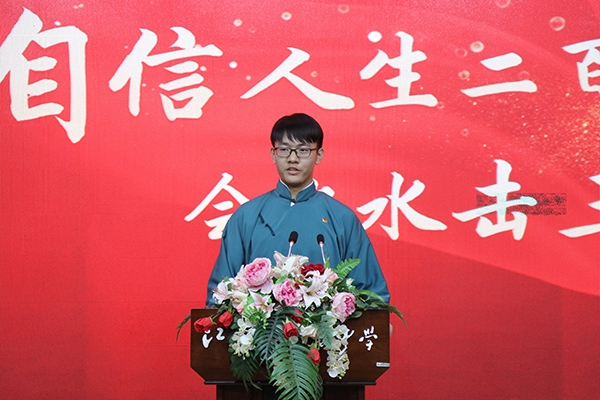 最后,学生工作处主任徐怀亮作了讲话。他说,青年处于人生积累阶段,要努力学习知识;青年要勇挑重担,勇克难关;青年要选择吃苦、选择奉献;青年要充满正能量。青春心向党,建功新时代,祝我们的祖国更加繁荣昌盛。