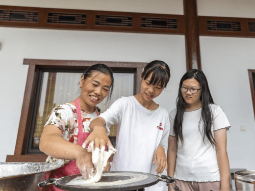 10月4日,重阳节当天,樟花村的“孝饼筒”制作在文化礼堂摆开了摊子,多位家庭主妇各展厨艺,如媳妇在家孝敬公婆般,让来樟花村共度重阳节的佳宾品尝色香味俱全的“孝饼筒”。捣麻糍可是个劳力活,这多是男子汉的行当。文化礼堂内外每处捣麻糍的场地都围起了人,谁也想轮换插上一手过把瘾。前来领取节礼的老人三五成群地赶来,说说笑笑,东看西看,并不急于去领那一袋米二包面。最开心与忙碌的要数这次活动的发起人及志愿者,他们跑前跑后,与各方面的来人打着招呼,忙着为老人与来宾作好本职工作及热情服务。