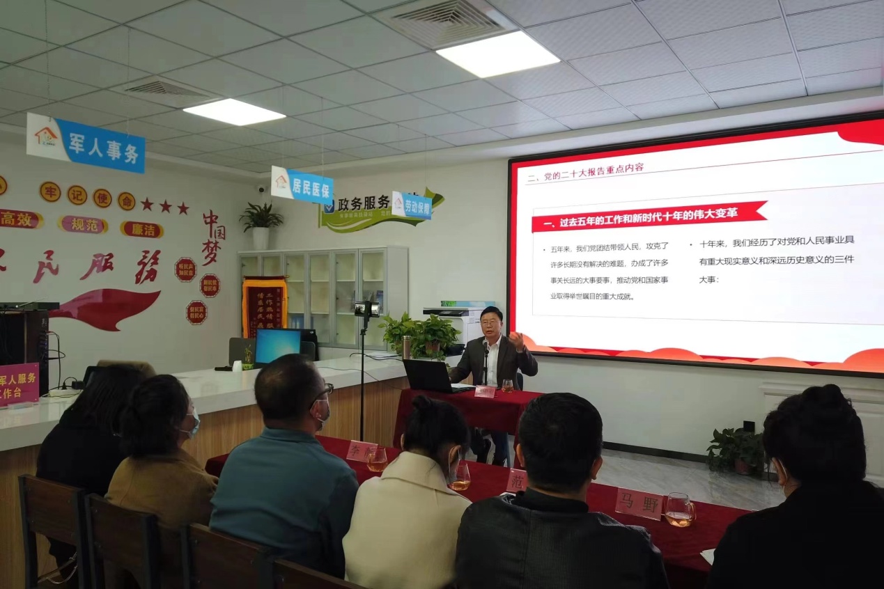 此次主题党日活动,以培训的方式为社区党员和社区工作者重点安排了主题党课。北街社区邀请原县委组织部副部长兼党校常务副校长、现县关工委报告团高级讲师刘中亚教授,为社区讲授《以中国式现代化全面推进中华民族伟大复兴》为主题的二十大宣讲活动。在近两个小时的宣讲活动中,刘教授强调在新时代背景下要结合实际工作,认真贯彻新时期加强基层党建工作的新目标、新要求,造就一支具有业务能力强、服务意识强的工作队伍,基层党员必须要从社区实际出发,结合社区发展规划,推动社区治理创新,推进党建引领基层社区治理的新风貌。