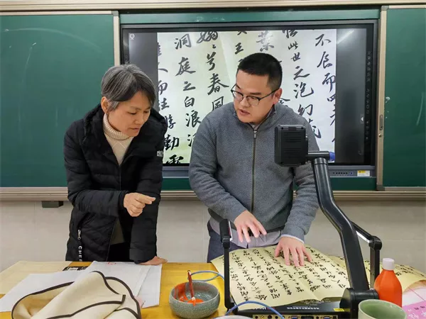 冬景似春华,莫负好时光。为了夯实教师的书法教学基本功,提升教师的书法文化素养,2022年12月8日,宜兴市新庄小学举办了第六期书法研修班毛笔专项培训。本次特邀中国书法家协会会员、江苏省书法院特聘书法家、江苏省紫金文化优青人才——单公俊老师为研修班成员进行指导。老师们学书的热情驱散了冬日的阴冷,新庄小学校园内一片暖意融融。