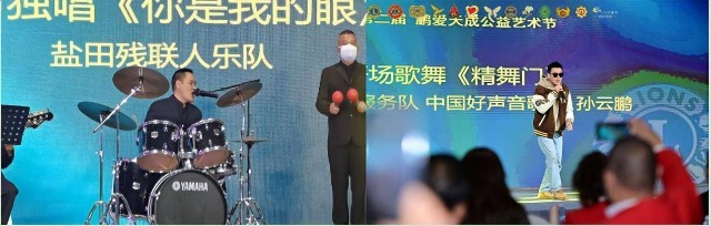本次艺术节,在爱心企业水贝壹号五楼宴会厅举行,盐田残康乐队器乐曲《嘉年华会》女声独唱《祖国圆舞曲》男声独唱《你是我的眼》激扬的歌声里,拉开了艺术节序幕,唱响他们想超越平凡生活的心声。