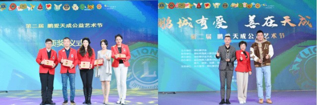 深圳狮子会彭道坚会长、狮子会第一专区主席黄少芳、第六专区主席吴志坚、第十六分区主席黄善娇、鹏爱天成公益艺术节主席王莹莹、上届主席车永进、执行主席倪隆填、周海、李国彪、魏萍、李辉、甘剑钧、詹永进、艺术节总顾问朱青青等为爱心企业、嘉宾、残疾演出人士颁发了爱心企业奖、爱心大使奖、最佳男歌手奖、卓越贡献奖、爱心演出奖等。