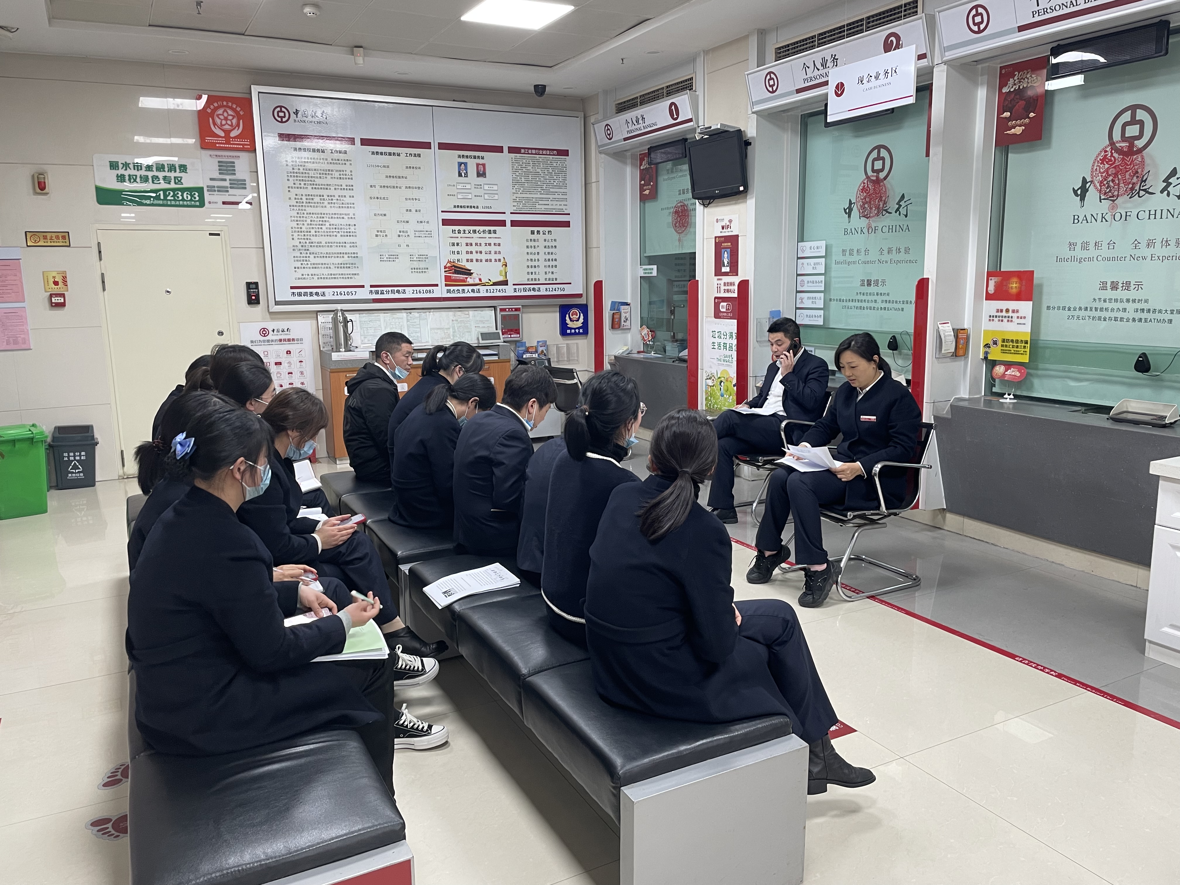 为确保学习宣传活动全面落实,遂昌中行紧紧围绕“学习宣传贯彻党的二十大精神·推动全面贯彻实施宪法”主题开展宣传活动,把学习宪法法律作为当前职工理论学习的重要内容,在贯彻落实精神的同时,加强对宪法和宪法精神的再学习、再领会,采取多种形式,取得了实效,做到宣传和学习计划到位、学习内容到位、宣传学习效果三落实。