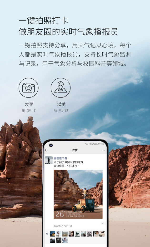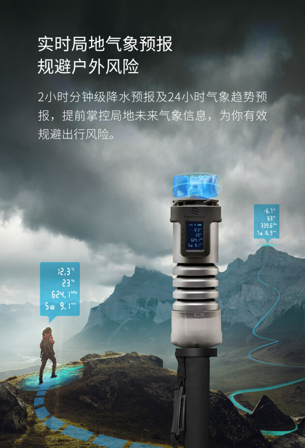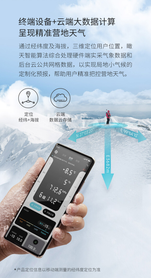 在人类社会进入知识经济时代、信息技术高速发展的背景下,天津瞰天科技为各位小主们研发了一款针对局地气象参数进行监测的手持智能气象仪,为您提供私人天气服务。精准度比手机公共天气预报精准的不止一点点哦!因为它采用终端设备+云端大数据计算、高精度气象传感器,气象数据实时监测。高精度指南针,准确精准定位。瞰天智能气象仪可为您24小时连续在线监测。有了它,可为您提前规避户外天气风险,为您提供户外精准天气预测,组织聚会再也不用怕突发情况的尴尬。实时气象数据信息可同步至APP端,在APP端可以体验个性交互,精准天气数据可随时查看及分享。让您成为朋友圈的气象达人!精准数据与小体积设计合二为一,镁铝合金配合局部聚碳酸酯+热塑性的三明治材料结构,经久耐用,用过它以后你就不想离开它!喜欢野外游玩的小主们都知道,选择一个好天气出门有多重要!!!出行时直接把重量才195g的它放在你的包包里,十分便捷,分分钟提升您的生活品质!而且操作简单,开盖即用,户外小白也能轻松使用!分分钟点亮你的美好生活,大大提升生活幸福感!