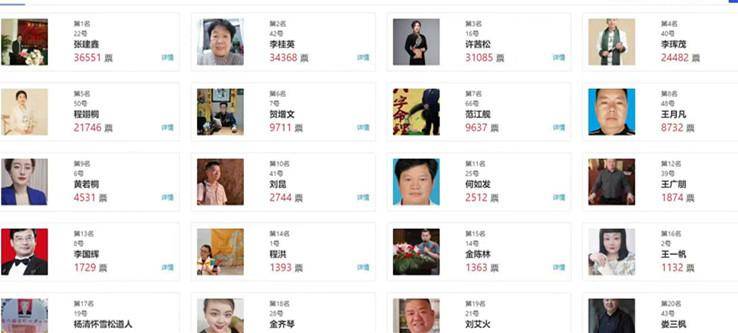 为了更好的弘扬中华优秀传统文化,向当代国学优秀传承人学习致敬,树立国学丰碑的榜样作用,2022年12月10日至2022年12月31日,有华夏人文出版社、新华在线网国学文化研究与传播中心、联民乡村振兴网、当代《国学名家》采编中心等单位共同主办的“当代国学影响力人物”网络评选正式上线并接受广大网友和相关专家学者的公开投票,经过近20天的网络投票和第三方见证,当代国学影响力人物网络评选成绩揭晓,当代传统文化学者、注册国际易学规划师张建鑫先生荣获本次评选活动的冠军(第一名),共得社会赞成票36551票,河南周易学会副会长兼平顶山分会会长李桂英女士获得亚军(第二名),获得社会赞成票34368票,获得季军的是广东省著名的杨公风水传承人、环境能量设计师许茜松(第三名),获得社会赞成票31085票,获得第四名的是传统文化学者李珲茂,获得社会赞成票24482票。获得优秀奖的是:程翊桐女士、贺增文先生、范江舰先生、王月凡先生、何如发先生、李国辉先生、黄若桐女士,王广朋先生、程洪女士、金陈林先生、王一帆女士等。
