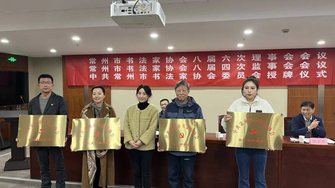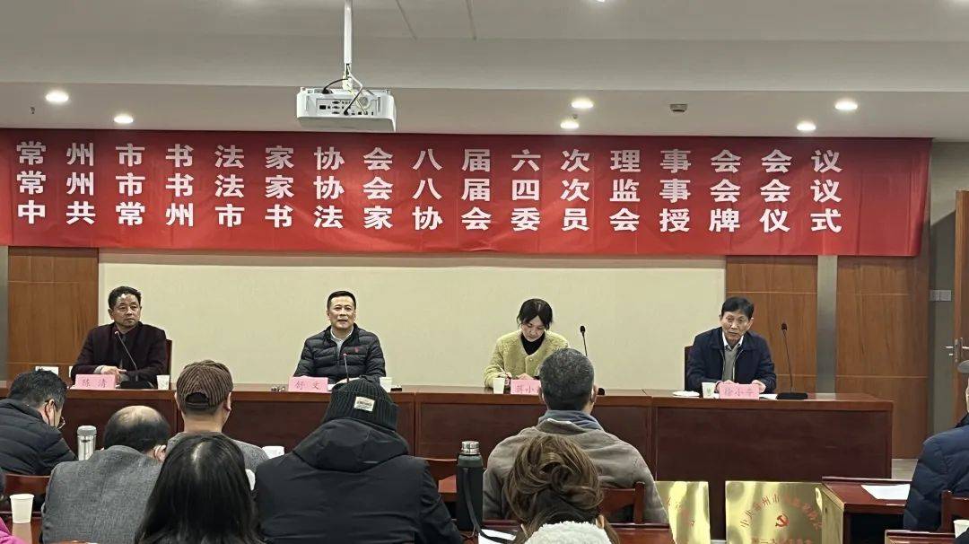1月13日下午,常州市书协八届六次理事会会议、八届四次监事会会议、常州市书协党委授牌仪式在常州市文联多功能厅举行。会议由常州市书协主席、党委书记陈清,市书协监事会主席徐小平分别主持。
