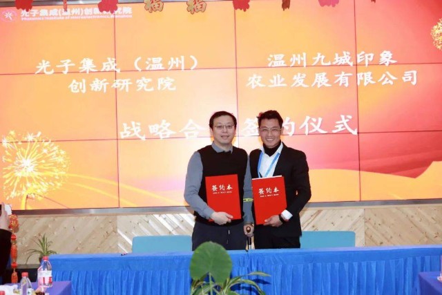 1月15日,光子集成(温州)创新研究院与温州九城印象农业发展有限公司战略合作协议在九城印象农业科技创业园举行。