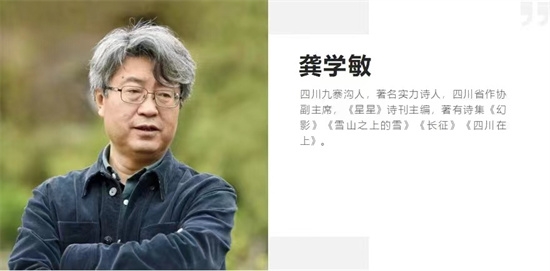 作者简介:龚学敏,1965年生于四川省阿坝藏族羌族自治州九寨沟县。1987年开始发表诗作。已出版诗集《九寨蓝》《紫禁城》等。四川省作协副主席。