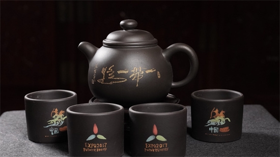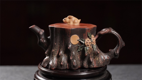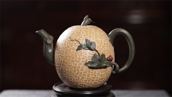 宜兴有天土,吴门出陶人。继陶瓷、紫砂已成国艺。一盈把握,诸子尽在一掬之间,上兑庄老之露、下泡儒佛之泉。禅意不看红尘事,一捧紫砂释天机。