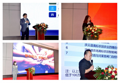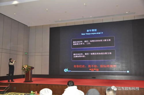 山东欧标信息科技有限公司董事长张元振代表全体员工作题为《继往开来 赢在2023年》的工作报告,对2022年公司取得的成绩进行了回顾和总结,对2023年工作进行了全面布置。报告指出,2022年是公司发展史上极不平凡、极其艰难的一年,但公司制定了科学的战略规划,克服疫情下的重重困难,完成数款产品的研发、联调与测试工作,打造了一支国内一流的水利信息化技术团队,研制出国内领先产品,全年实现了营收的重大突破。2023年公司将重点完善管理制度,实现管理的闭环;深耕行业,在智慧水利、农业方向深度研发、交付接地气产品和设备;强化执行力,团队的成功是5%的战略加95%的执行,具备较强的执行力是取得成绩的关键;构建学习型文化,实施讲师制度,让员工更好的服务客户。会议指出,只要全体员工一步一个脚印,扎实推进各项工作,一定能实现公司发展的宏伟目标!