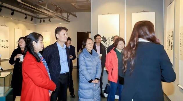 在接下来的观展环节,由上海市工商联文化商会书画专委会发起人、本次展览策展人王雅香带领各位来宾现场观展,从精神、团结、传承三个纬度对本次书法捐赠展进行详细解读。