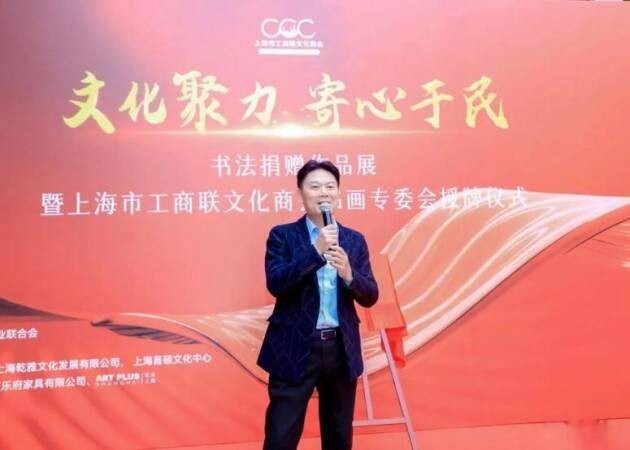 上海市工商联文化商会会长杨震华先生在致辞中,对本次展览的名称“文化聚力,寄心于民”作了很好的诠释,他表示,文化要走进生活,书画要通过更多的社会活动,让艺术家与社会家相结合,从而带动经济的发展,给更多的领域带来附加值。希望在上海市工商联文化商会书画专委会成立后,凝聚更多有追求、有能力的企业家,丰富文化商会队伍构成的多元性,为企业提供更好的立体化服务,实现"以艺促商、以商济艺”的良性互动。