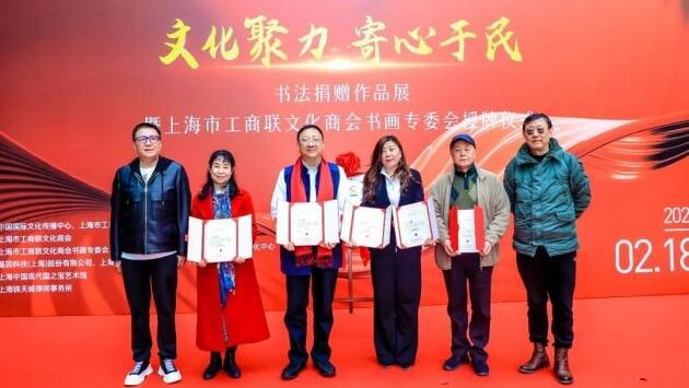 文化振兴,商艺互融。众多艺术界、商界同仁共同了见证上海市工商联文化商会书画专委会的成立。现场,由上海市工商联文化商会副会长潘金光、副会长孙骄雄、拍卖行业协会会长刘建民、艺术上海总经理兼总策展人顾之骅,为书画专委会组织架构成员颁证荣誉证书。