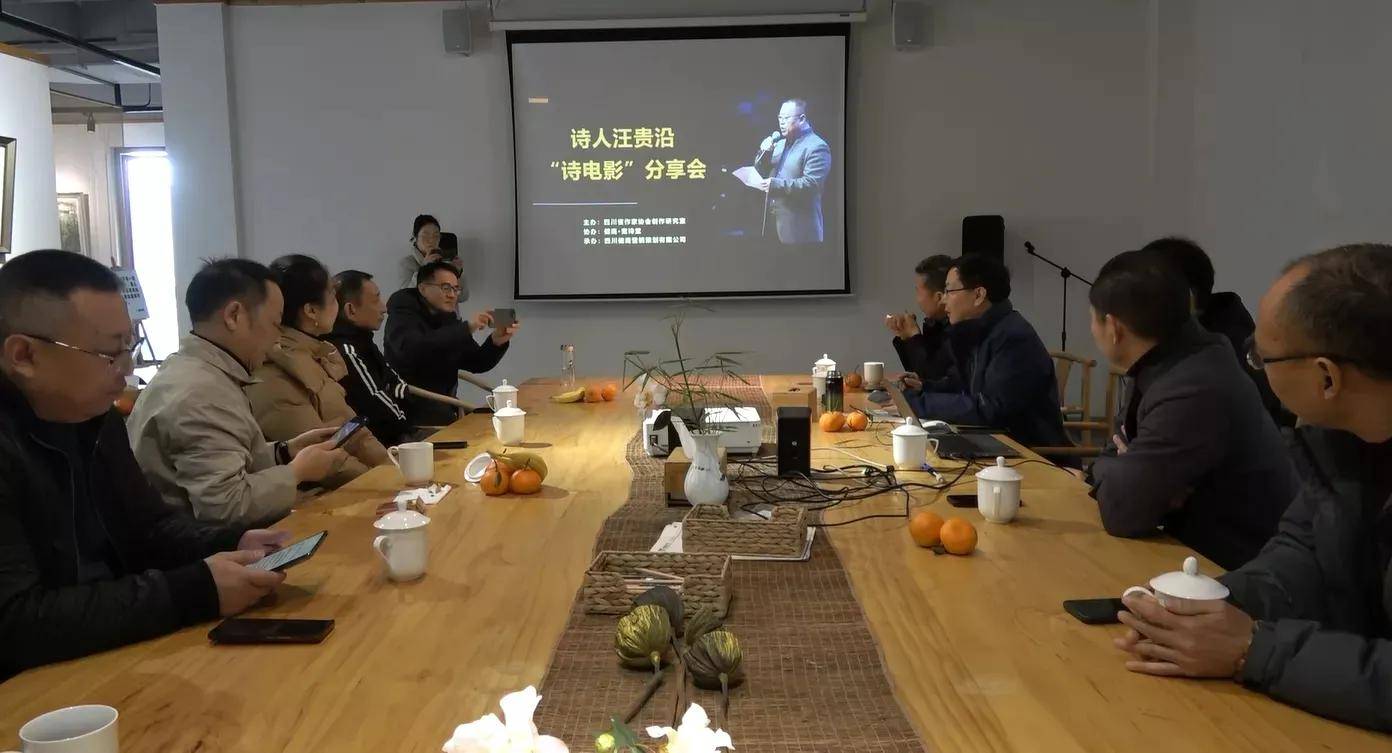 2月23日,万物复苏,春暖大地。为贯彻四川省作家协会第九次代表大会工作报告关于“建立优秀文学作品转化机制,推动与影视、戏剧、网络视频等艺术形式和文化产业实现良性互动”的工作部署,由四川省作家协会创作研究室主办,健鹰·宽诗堂协办的“诗人汪贵沿诗电影分享会”在成都锦门健鹰·宽思堂城市策划馆成功举行。
