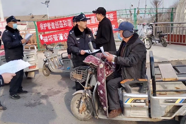 活动中,生产保障中心治安防控组干部和经警队员,积极对过往村民、群众开展管道保护法的宣讲活动,通过悬挂《石油天然气管道保护法》宣传布标、发放《治安管理处罚条例》、管道保护法制内容资料传单及面对面交流的方式,着重对现场赶集的村民和群众、员工灌输了油气管道保护工作的重要性和必要性。并重点讲解了石油管道安全防护的意义和发生事故后的严重影响及危害,使油区周围广大村民、群众对石油管道保护工作有了更深的认识和提高。(袁峰)
