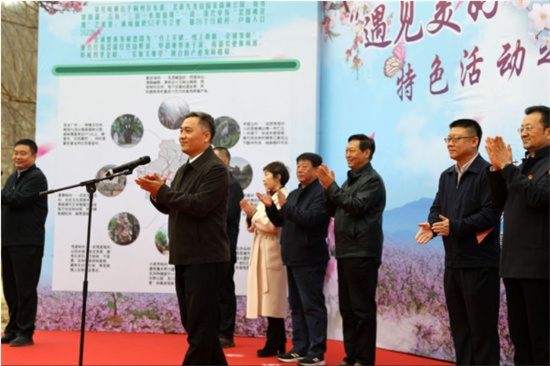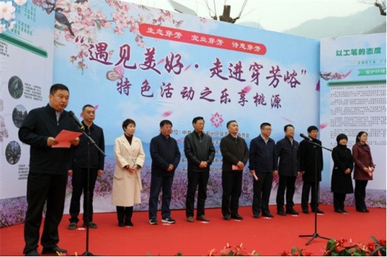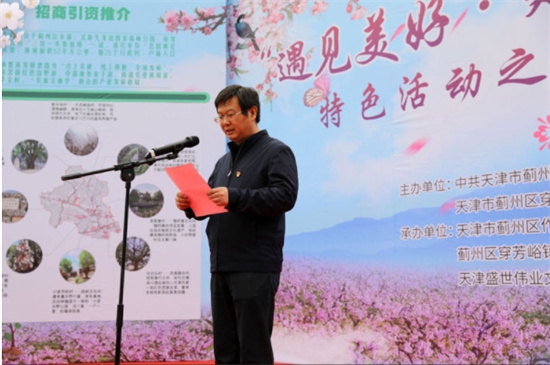 副区长徐向广致辞,他表示“遇见美好·走进穿芳峪-乐享桃源”活动既是推进文旅融合、助力乡村振兴的一大亮点,更是深入贯彻落实我区奋力建设生态优先绿色发展典范城市的重要举措。我们要牢固树立绿水青山就是金山银山的理念,打通生态转化路径,把生态环境保护作为立区之本、发展之基、财富之源,把文旅融合发展文章做足,把全域旅游品牌做强,全力以赴“抓招商、上项目、强产业”,以项目发展带动产业发展,以产业振兴助力乡村振兴,为蓟州经济社会发展夯实基础、积蓄后劲。