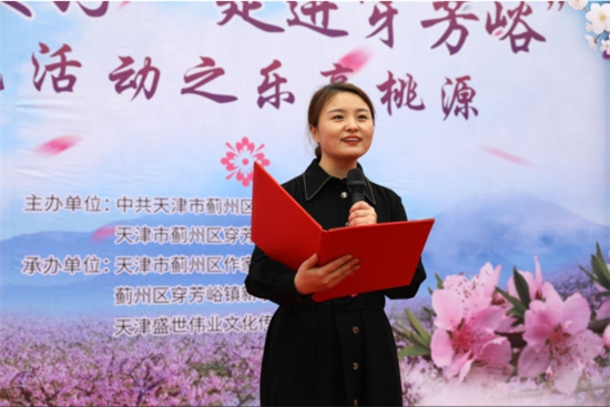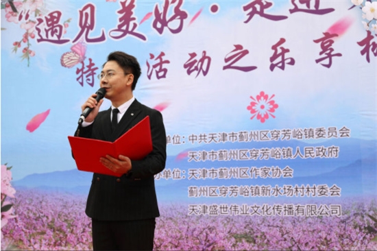 为践行“绿水青山就是金山银山”的发展理念,加深文旅融合,促进招商引资,助力乡村振兴。2023年3月21日,由中共天津市蓟州区穿芳峪镇委员会、天津市蓟州区穿芳峪镇人民政府主办,天津市蓟州区作家协会、天津市蓟州区穿芳峪镇新水场村委、天津市盛世伟业文化传播有限公司共同承办的 “遇见美好·走进穿芳峪”特色活动之“乐享桃源”文艺演出活动在穿芳峪镇新水场村隆重举行。