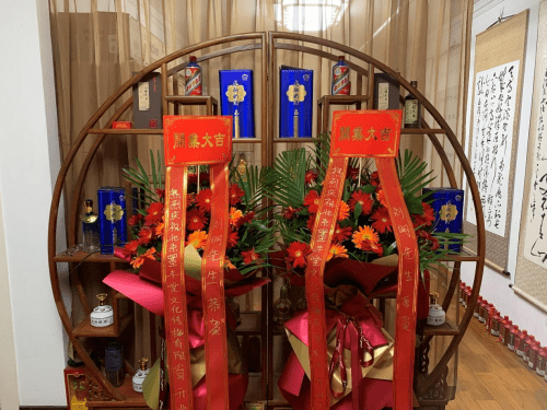 再后,新华在线网副主编朱长云先生向任旭丰先生赠送了中国书法家协会理事、北京书法家协会副主席刘俊京先生作品:墨丰堂;中国旅游文化网总编周步先生向任旭丰先生赠送了中国书法家协会理事、北京书法家协会副主席刘俊京书法作品:《道德经》第八十一章内容。关洪刚先生诗歌朗诵《将进酒》以及八雅先生经典之作《八雅说》,将开业典礼推向了高潮。