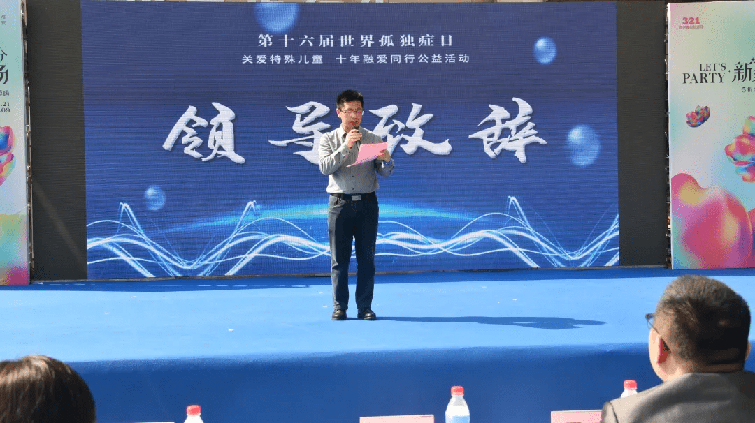 活动中淮安市人大代表、民建会员、淮安经开区星宝贝智乐园、淮安彩虹雨康复中心创始人朱海童,代表承办单位致欢迎词,感谢各界爱心人士的关心和支持;淮安经开区社会组织发展促进中心副主任朱林,代表协办单位致辞,希望全社会都能接受和理解这些特殊儿童和家长们;淮安民建经开区总支副主委、经开区三支部副主委石宇,代表主办单位作了热情洋溢的致辞,向社会各界爱心人士和志愿者们表示衷心的感谢,向战斗在孤独症前沿阵地的特教老师们表达最诚挚的谢意!随后大家一起欣赏了由儿童、家长、老师一起精心排练的节目,用掌声鼓励小朋友、用掌声感谢家长、用掌声致敬老师。