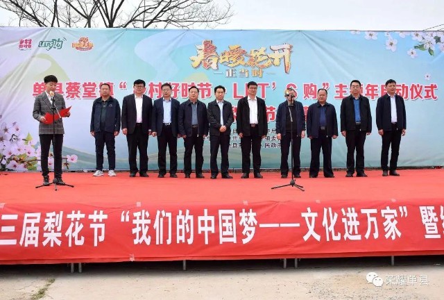 蔡堂镇党委、政府高度重视文化旅游工作,以举办梨花节为载体,通过开展一系列丰富多彩的节庆活动,吸引八方宾朋来单县观光旅游,聚集四海客商来单县投资兴业,努力让梨花节成为单县旅游新品牌、新亮点、新名片,进一步唱响我县乡村旅游文化品牌。当前,正是乡村旅游、黄河大集、新时代文明实践等活动创办的关键时期,希望蔡堂镇广大党员干部群众能够以本次活动为契机,充分利用节假日和农闲时间,经常开展丰富多彩、喜闻乐见的文体活动,构建和谐,欢乐,健康,文明的文化氛围,让党的政策在舞台上响起来、唱起来,让乡村文明在寓教于乐的活动中振兴起来!