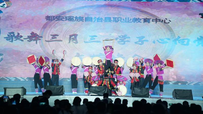 都安职业教育中心的领导、老师和同学们,学生家长代表,校友代表,中国矿业大学(北京)研究生支教团往届代表,媒体朋友们以及数百万名通过视频直播观看本场晚会的观众朋友们,一同共享这场校园文化艺术盛宴。
