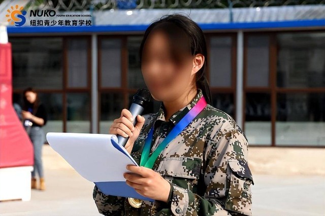 纽扣青少年教育学校学生代表发表感悟,她讲到,通过这次活动,收获了快乐、幸福和成长。同时,感谢纽扣青少年教育学校的老师和教官们一直以来的陪伴、支持,最后祝福同学们在纽扣青少年教育学校,能够发掘自我潜能,实现完美蜕变。