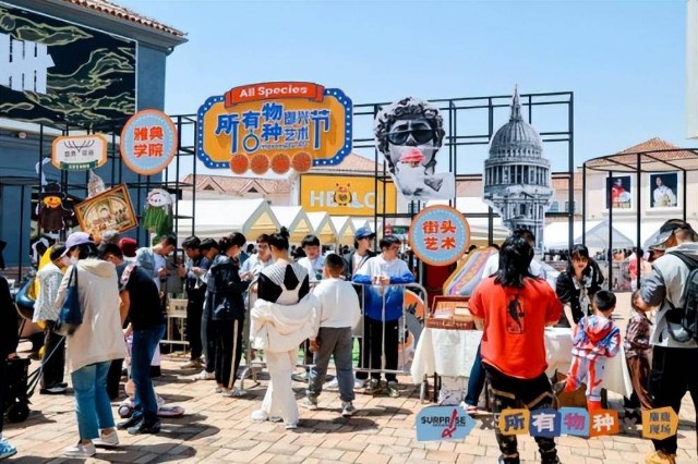 艺术节不仅为前来购物的消费者提供了琳琅满目的美食、商品及小型娱乐项目,还带给大家丰富多彩的文化艺术体验活动,沉浸式互动的消费新体验让游客流连忘返。活动包括文艺知识普及、自由音乐和街头艺术表演、行为艺术、装置艺术以及可参与的演奏演唱、艺术拼贴和涂鸦艺术等多种形式,结合现场带有复古文艺气息的美陈设计和穿着古典服饰的NPC人物造型,呈现出一场极致的文化购物盛宴。